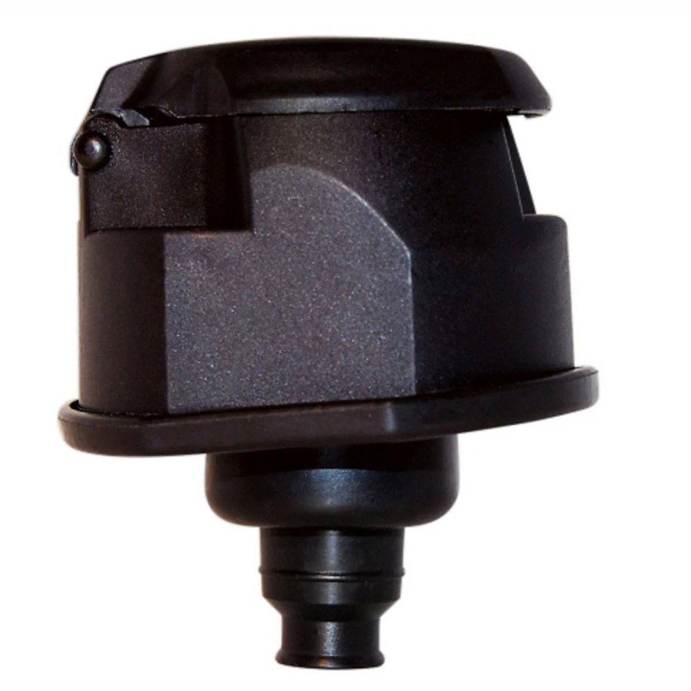 Die 13-polige Anhängersteckdose sorgt für eine optimale Stromversorgung deines Anhängers. Der Stecker ist aus schlagfestem, schwarzem Kunststoff gefertigt. Darüber hinaus besitzt sie eine Abschaltautomatik für Nebelschlussleuchte und der Deckel schützt den Stecker vor eindringendem Wasser.