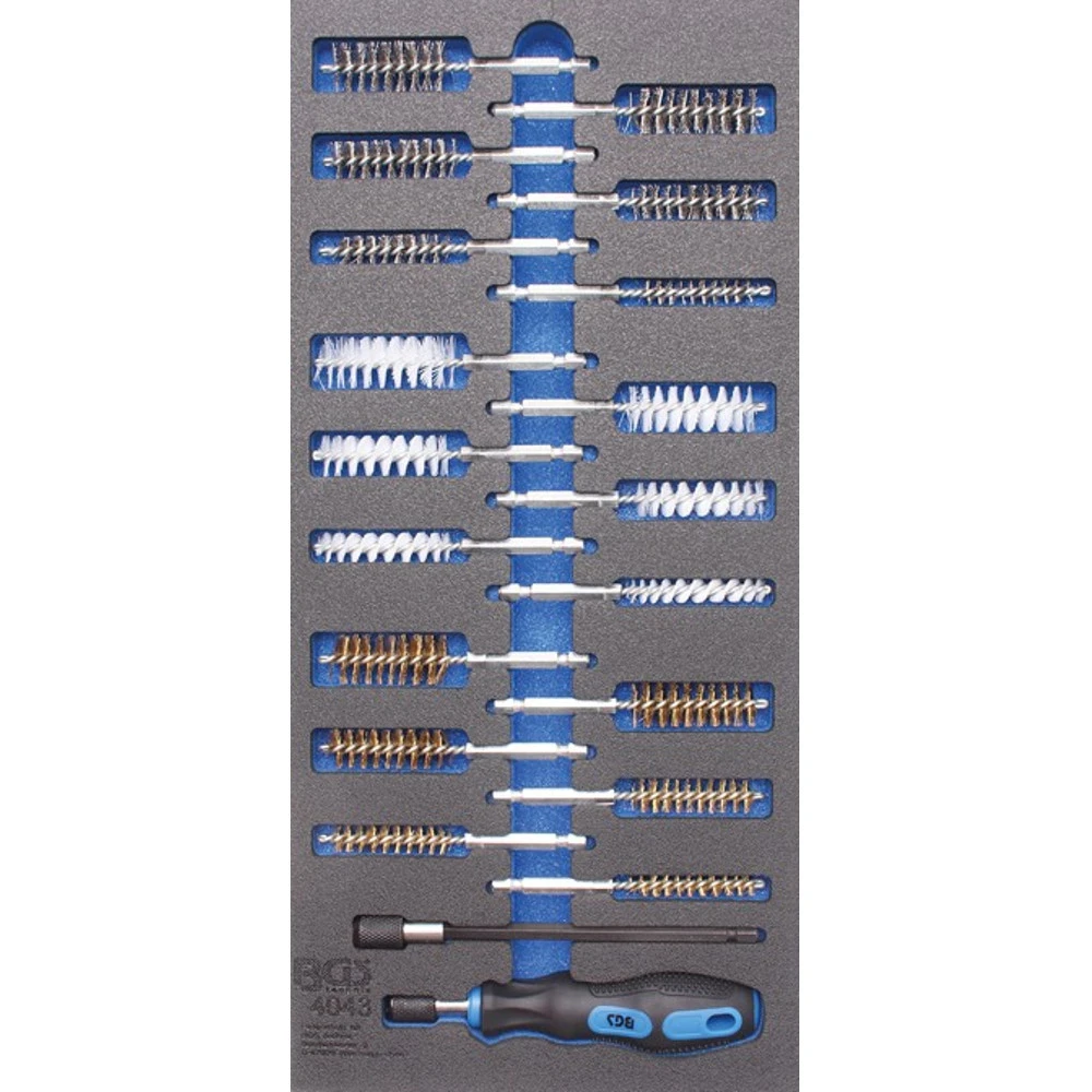 BGS Werkstattwageneinlage 1/3 mit 20-teiligen Bürsten-Sortiment für präzise Reinigungen
