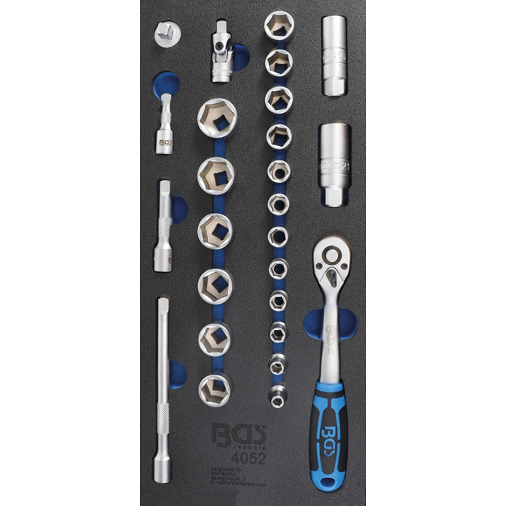 BGS Werkstattwageneinlage 189 x 408x 32 mm, Größe 1/3 mit 26 Werkzeugen 3/8″