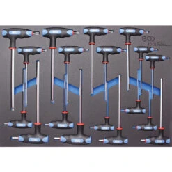 Möchtest du Ordnung in deinem Werkstattwagen halten? Dann sind die bestückten Werkstattwageneinlagen genau das Richtige für dich. Die Werkstattwageneinlagen sind aus robustem, hochwertigem Hartschaum und sind mit 18 Werkzeugen mit Innensechskant Antrieb und T-Profil bestückt.