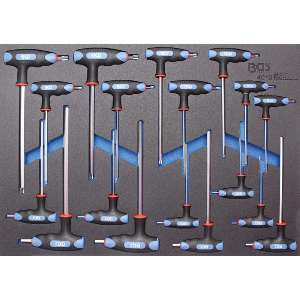 BGS Werkstattwageneinlage 3/3 mit 18-teiligen T-Griff Schraubendreher-Satz mit seitlicher Klinge aus Chrom-Vanadium-Stahl
