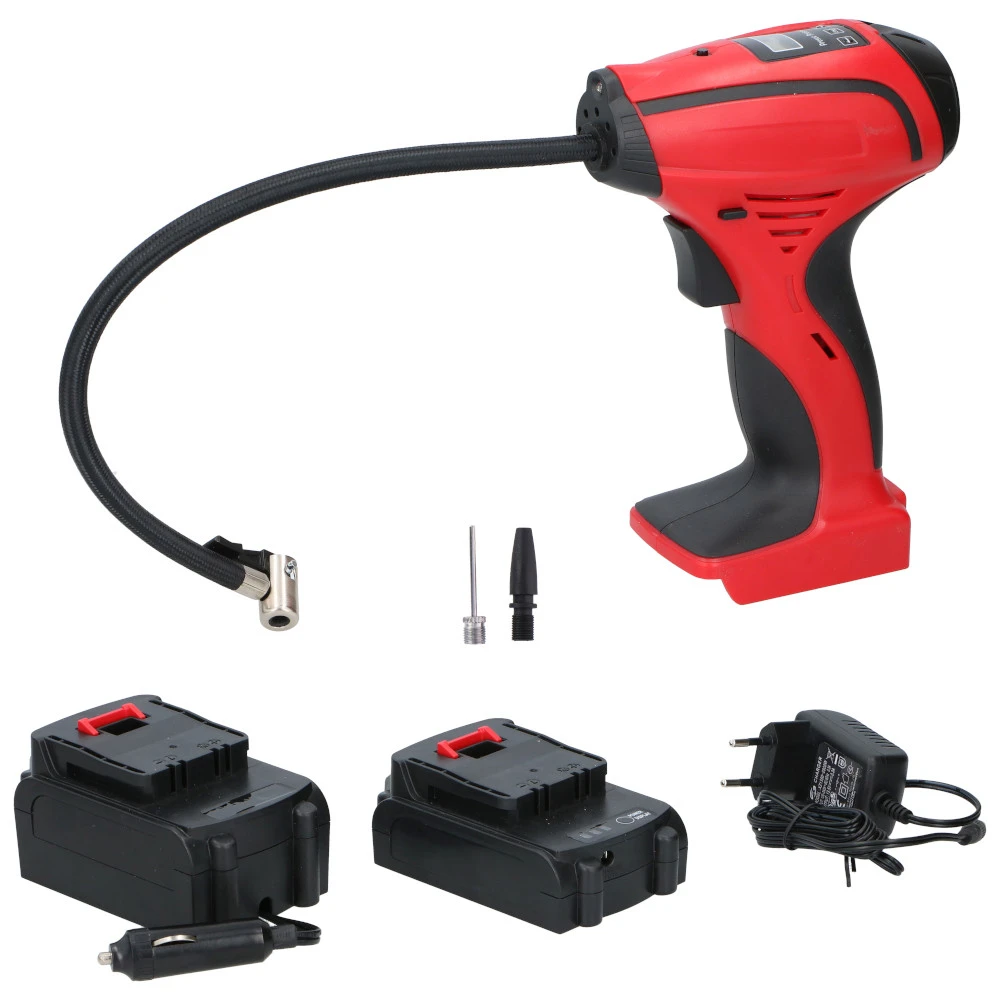 Über die digitale LCD-Anzeige ist der Luftdruck vorab einstellbar und dank der Autostoppfunktion stoppt das Gerät beim Auffüllen automatisch, sobald der gewünschte Druck erreicht ist. Zusätzlich sorgt die LED-Lampe für eine klare Sicht, auch in dunklen Umgebungen. Darüber hinaus ist der Kompressor mit einem Entriegelungsknopf ausgestattet, um versehentliches Einschalten zu vermeiden.