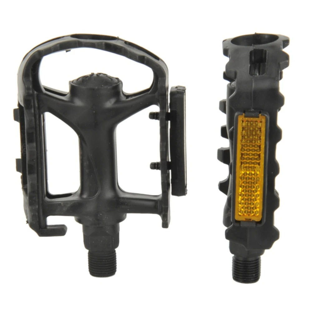 Diese Fahrradpedale sind rutschfest, robust und mit Reflektoren für mehr Sicherheit ausgerüstet. Der Metallkörper wird von einem stabilen Kunststoffrahmen umgeben. Ein sicherer Halt wird durch die gezahnte Trittfläche geboten. Die Pedale sind für alle Fahrradtypen geeignet.