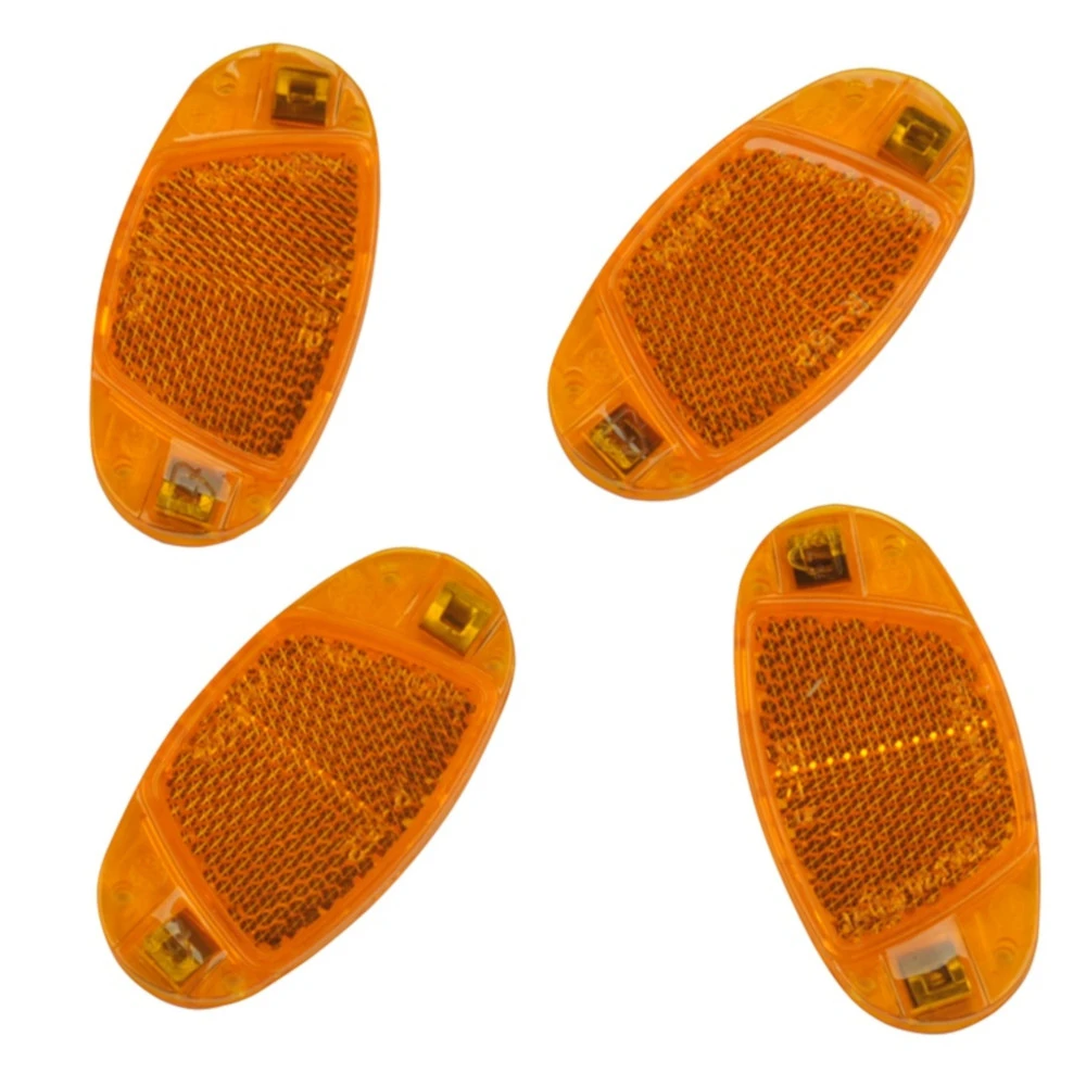Fahrrad Speichenreflektoren für mehr Sicherheit im Straßenverkehr. Einsetzbar für Standardspeichen bis ca. 2 mm Durchmesser. Durch die Sicherheitsclips sind die Reflektoren diebstahlsicher.
