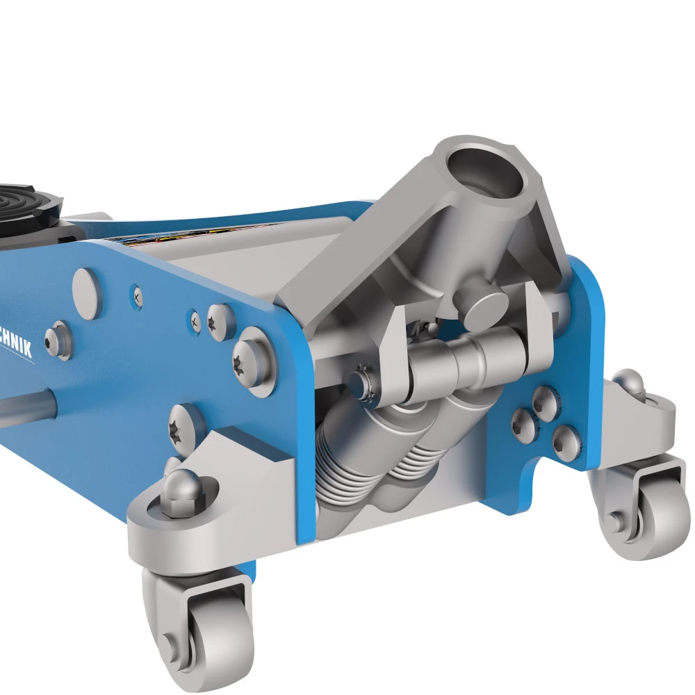 Der hydraulische Rangierheber GRH 2,5/460 AL von Güde mit großem Auflageteller ist ein handlicher und zuverlässiger Wagenheber mit einer Tragfähigkeit von 2,5 Tonnen. Der Rangierheber verfügt über eine Hubhöhe von min. 100 mm und max. 465 mm. Mit Hilfe der 2 Lenk- und 2 Laufrollen lässt sich der Heber schnell und effizient an die richtige Stelle platzieren. Die Ventilsteuerung wird durch ein innenliegendes Gestänge und durch Drehen des Absenkventils links neben der Pumpe gesteuert, was ein sicherer und präziser Arbeitsablauf gewährleistet.