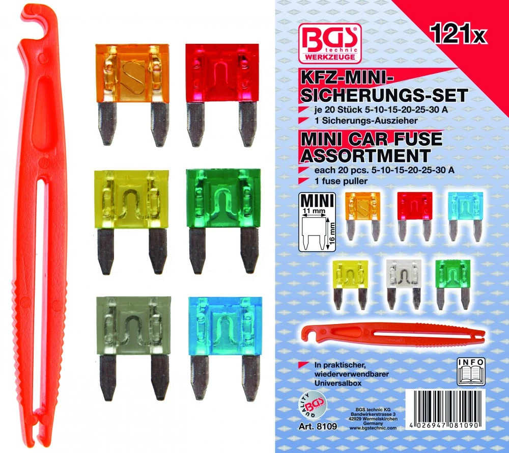 KFZ-Mini-Sicherungssortiment, 121-teilig mit Sicherungsauszieher