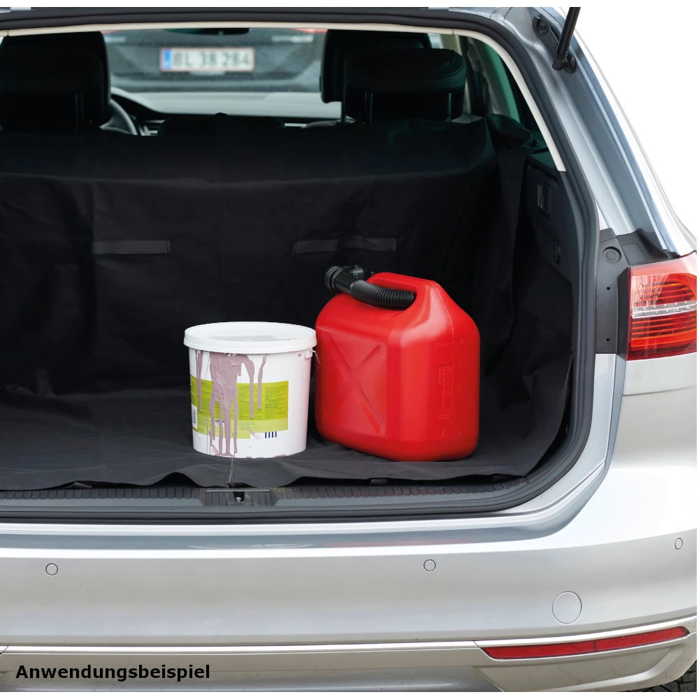 Die wasser- und schmutzabweisende Kofferraummatte aus schwarzem Oxford-Gewebe ist eine optimale Lösung zum Schutz deines Laderaumes. Dank der Klickverschlüsse kann die Matte mit wenigen Handgriffen im Kofferraum aller gängigen PKW-Modelle aufgebaut und fixiert werden. Somit wird der Transport von Baustoffen, Pflanzen sowie Gartenabfällen ohne Verschmutzung erleichtert. Zusätzlich ist die Schutzmatte auf der Rückbank für Hunde einsetzbar, um deren Hundehaare auf den Sitzen zu vermeiden. Darüber hinaus lässt sich die Schutzmatte leicht mit einem feuchten Tuch reinigen.