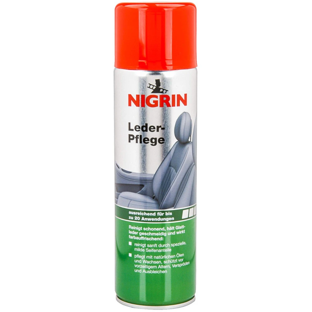 Nigrin Leder-Pflege reinigt Glattleder auf eine sanfte Art, hält es geschmeidig und pflegt und schützt es mit natürlichen Ölen. Regelmäßig angewendet sorgt dieses Nigrin Lederpflegespray somit für die Werterhaltung des Autos. Der Leder-Reiniger lässt Leder wie neu aussehen und bietet Schutz gegen Flecken und Spritzer. Die Lederpflege ist ausreichend für bis zu 20 Anwendungen.
