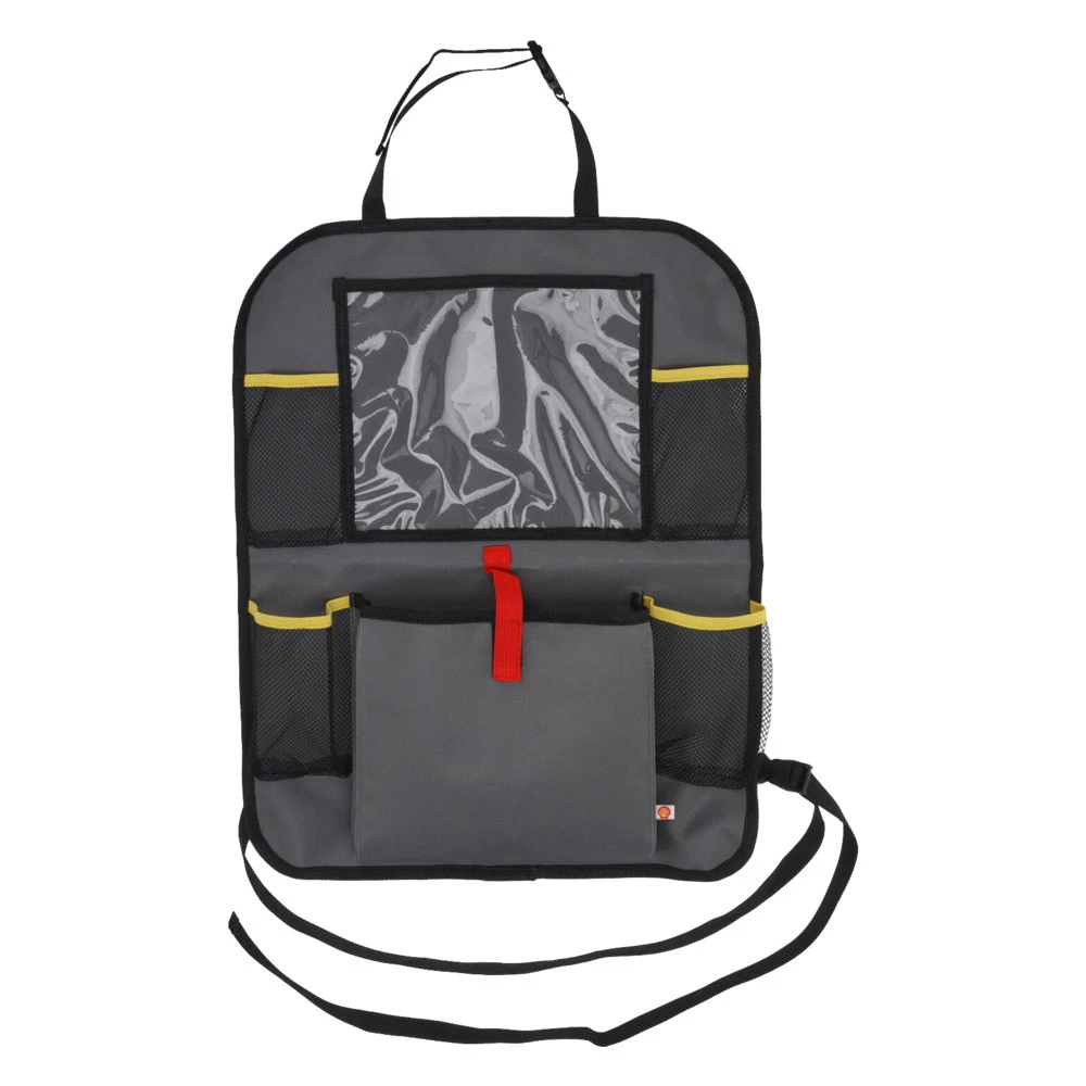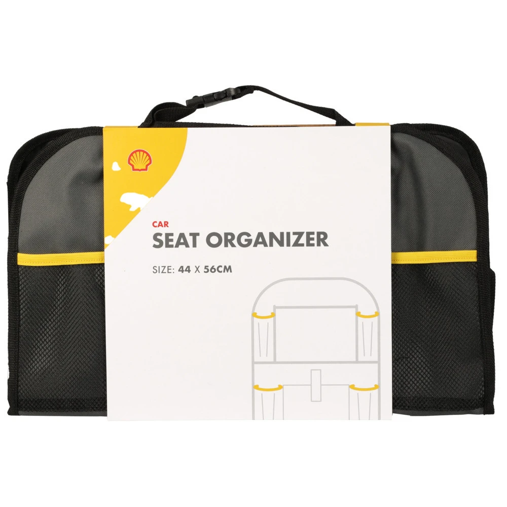 Der universelle Auto-Rückenlehnen-Organizer von Shell sorgt für mehr Ordnung in deinem Auto. Seine vier Netz-Taschen und zwei Fächern bieten ausreichend Stauraum für die verschiedensten Gegenstände wie Getränke, Spielzeug, Malbedarf, Snacks oder Warnwesten. Dies erleichtert die Organisation und sorgt dafür, dass wichtige Dinge stets griffbereit sind. Des Weiteren wird verhindert, dass bei einer plötzlichen Bremsung oder einem Unfall, die Gegenständer im Auto umher geschleudert werden. Zusätzlich schützt der Autositzschoner den Vordersitz vor Schmutz, Flecken oder Kratzern. Die Befestigung erfolgt schnell und einfach durch zwei verstellbaren Klickverschlüssen.